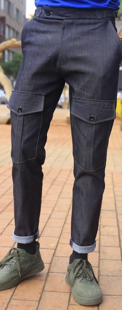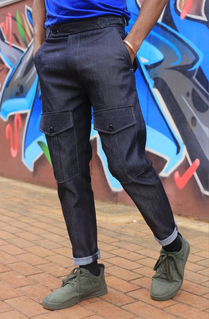 A utility bespoke jeans designed to intersect streetwear and designer wear in our interpretation look of “wearable high fashion”. An ideal functional cut to style your hip looks of choice. It could be styled within the themes of smart casual, streetwear, formal and abstract looks.